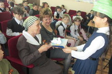 Сегодня учащиеся и учителя (Хабибуллина Ф.Г., Садыкова Л.М., Мухаметшина Г.М. и Борисова С.Г.) ездили с концертом в Дом Престарелых. Концерт был посвящён 70-летию Победы в ВОВ. Учителя и учащиеся исполнили песни на военную тематику, пожелали присутствующим здоровья, мирного неба над головой и вручили бабушкам и дедушкам открытки, сделанные своими руками.