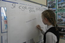 Сегодня в школе члены УСШ провели акции «Я сделал доброе дело» в среднем и старшем звеньях, а в начальной школе «Добро-это…» и «Я знаю добрые слова». Оформили стенд поговорок и пословиц на тему «Доброта» (Доброе слово и кошке приятно, Не одежда красит человека, а его добрые дела, Не хвались серебром, а хвались добром, За добро добром и платят, др.).