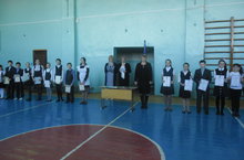Сегодня утром состоялась общешкольная линейка по итогам 3 четверти. Директор школы Абдрахманова Л.З. наградила грамотами победителей спортивных соревнований и различных конкурсов.