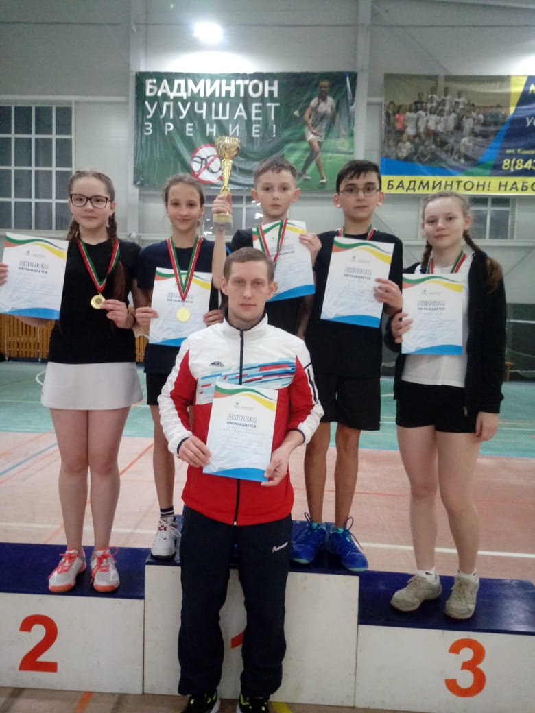 Воспитанники спортивного клуба "ОЛИМП", ученики нашей школы заняли первое место в Республиканских соревнованиях по бадминтону "Проба пера". Команда будет защищать честь Татарстана в городе Саратове. Поздравляем тренера команды Муштакова М.С.. Успехов Вам.