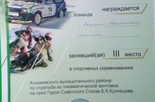 В спортивном соревновании по стрельбе из пневматической винтовки на приз Героя СС Б.К. Кузнецова команда нашей школы заняла 3 место. Руководителя команды Платонова С.А. наградили благодарственным письмом.