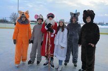 На катке состоялись "Весёлые старты". Две команды соревновались между собой в различных конкурсах (биатлон, керлинг, горные лыжи, волейбол, баскетбол и др.только всё на коньках). Детей поздравил Дед Мороз и Снегурочка, их сопроводили сказочные герои.