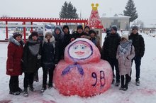 Все классы возле нашей школы и в центральном парке построили снежные фигуры.