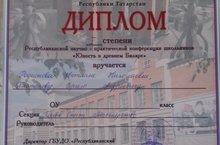 Учитель ОБЖ и технологии Платонов С.А. и его ученик Камалов Ильназ приняли участие в научно-практической конференции школьников "Юность в Древнем Биляре", которая прошла в Билярской СОШ Алексеевского района. Ильназ награждён дипломом 3 степени, Сергей Андреевич-дипломом 1 степени.