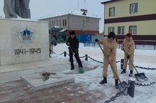 Юнармейский отряд очистил от снега территорию памятника Неизвестному солдату.