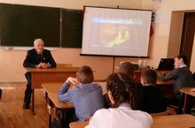 Учащимся начальных классов Шувалов Петр Алексеевич, который работал председателем РайПО, очень подробно рассказал о том, как жили, работали в годы войны в селе, как учились в школе. Рассказал о своем отце, как он воевал и погиб на войне. Также рассказал о том, как сам служил. Дети внимательно слушали, была полная тишина в зале.Детям запомнится надолго его воспоминания. -
