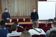 Проект "Герои Отечества". В целях популяризации военной профессии проведена встреча с Раилем Габдрахмановым, выпускником нашей школы. Он служит в Алтайском крае командиром танковой роты. На мероприятии приняли учащиеся старших классов.