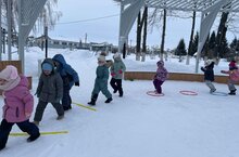 С целью развития нравственно-патриотических качеств воспитанники старших возрастных групп совместно с воспитателями посетили сквер им. Залакова А.М. Воспитанники с большим интересом просмотрели постройки из снега, погуляли по скверу, поиграли с спортивные игры-эстафеты, водиди хоровод вокруг елочки.