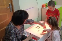 Логик фикерләүне, игътибарны, вак моториканы үстерү максатыннан чыгып тәрбияләнүчеләр зур теләк белән "Югалган кисәкләрне тап" уен магнит җыелмасын уйныйлар. Уен барышында бала рәсемне уен тактасына урнаштырырга һәм югалган кисәкләрне табарга тиеш.