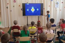 На протяжении всей недели в детском саду проходили мероприятия, посвященные Дню космонавтики: беседы о космосе, о знаменитых космонавтах, рассматривание презентации с изображением загадачного мира звезд и планет, чтение стихов и загадок о космосе.