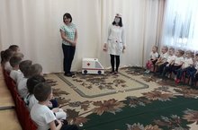 Инспектор ОГИБДД напомнил детям о правилах дорожного движения, о пользе светоотрожающих элементах, о правилах поведение катания на санках.