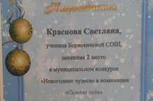 Наша школа активно прняла участие в новогоднем конкурсе "Новогодние чудеса" .Наши учащиеся Краснова С. и Ведяскина С. в номинации "Символ года" заняли 1 и 2 места. Мы очень рады, что в нашей школе есть такие талантливые дети.