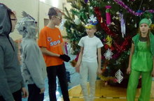 На школьном новогоднем вечере для учащихся, родителей и гостей праздника была представлена природоохранная инсценировка "Не рубите елочку"