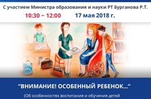 17 мая с 10.30 до 12.00 состоится очередное республиканское интернет - собрание на тему "Внимание! Особенный ребеное" с участием МО и Н РТ