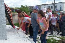 Сегодня учащиеся лагеря "Солнышко" посетили сельский памятник неизвестному солдату и возложили красные гвоздики, сделанные своими руками в лагере.