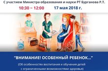 17 мая с 10.00 до12.00 будет проходить Республиканское родителтское интернет-собрание по теме "Внимание! Особенный ребенок...". Присоедениться к собраниею можно по ссылке киу.рф. Задать свой вопрос можно по адресу: roditelirt@mail.ru