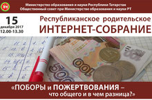 15 декабря 2017 года в 12.00 - 13.30 состоится Республиканское родительское интернет - собрание по теме "Поборы и пожертвования - что общего и в чем разница?"