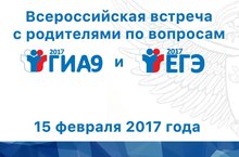 15 февраля 2017 года глава Рособрнадзора проводит Всероссийскую встречу с родителями по вопросам проведения оценочных процедур15 февраля 2017 года руководитель Федеральной службы по надзору в сфере образования и науки Сергей Кравцов в Ситуационно-информационном центре ведомства проведет всероссийскую встречу с родителями по вопросам проведения государственной итоговой аттестации по программам основного общего и среднего общего образования в 2017 году.Руководитель и специалисты Рособрнадзора ответят на вопросы родителей, касающиеся:- организации и проведения в 2017 году ЕГЭ и ГИА-9;- содержания контрольных измерительных материалов ГИА-11 и ГИА-9;- особенностей проведения государственной итоговой аттестации для выпускников школ с ограниченными возможностями здоровья;- минимального количества баллов ЕГЭ для получения аттестата и поступления в вузы.В настоящее время уже принимаются вопросы:- по электронной почте ege@obrnadzor.gov.ru;- на странице Рособрнадзора в социальных сетях.Начало мероприятия: 11:00.Во время мероприятия на официальном канале Youtube(https://www.youtube.com/user/RosObrNadzor) Рособрнадзора из Ситуационно-информационного центра будет вестись on-line трансляция.