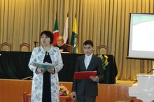 Директор школы Еликова М.Г. поздравила учащихся, коллег с наступающим праздником. Учителям истории Яковлева В.Г. и физической культуры Емелюкова В.Н вручены Почетные Грамоты УО, за достигнутые успехи в образовании и воспитании детей.