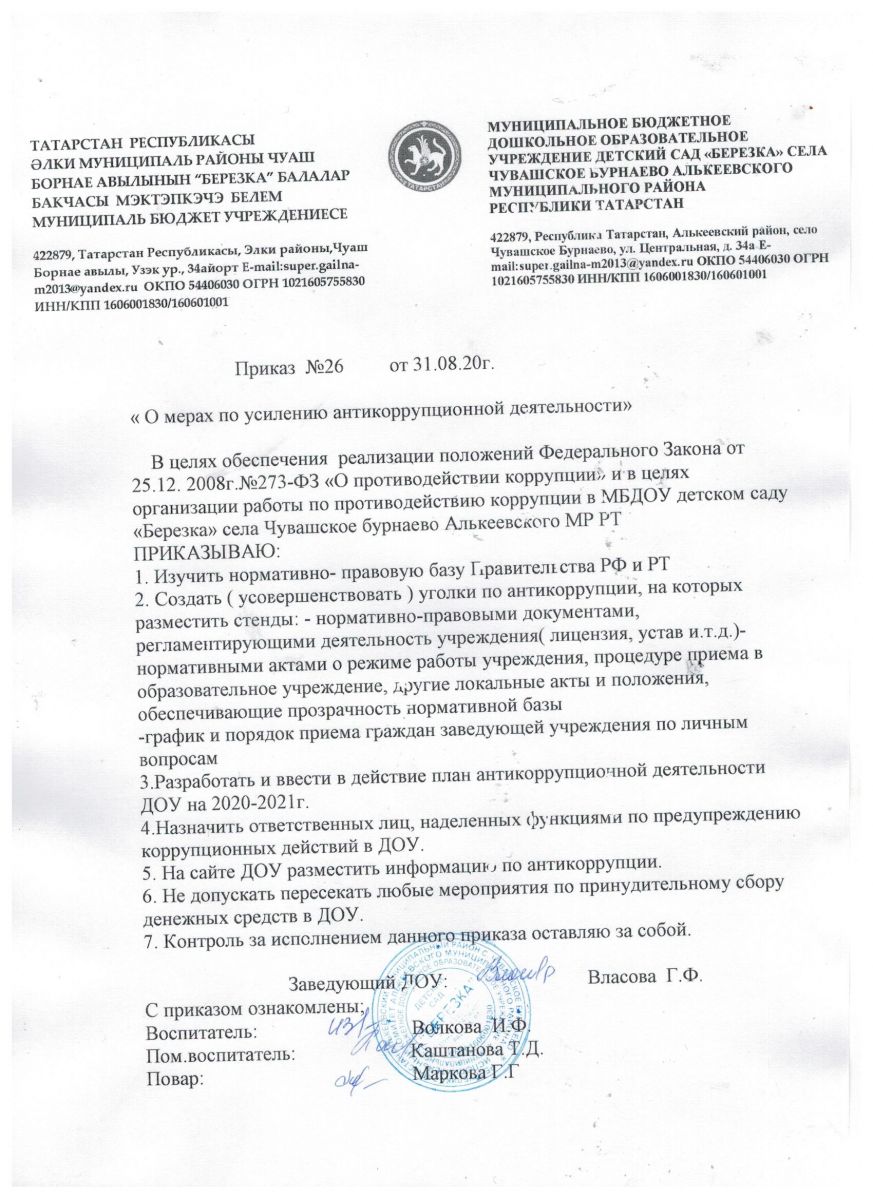 Приказ "О мерах по усилению антикоррупционной деятельности в МБДОУ"