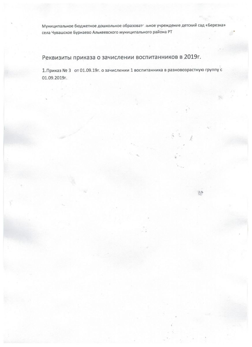 Реквизиты приказа о зачислении детей в ДОУ на 2019г.
