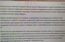 Министерство образования и науки Республики Татарстан открыло «горячую линию» для оказания помощи и поддержки школам, колледжам, техникумам и вузам, которые временно переходят на дистанционные занятия в целях предотвращения распространения коронавируса.