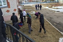 Уборка на территории памятника землякам, погибшим в Великой Отечественной Войне 10.04.2015