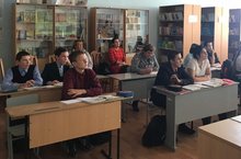 Сегодня учащиеся 8 класса с учителем русского языка и литературы Чубуковой Н.Н. посетили библиотечный урок литературы в музее П.П. Хузангая "Есенин - это вечно". Цель мероприятия была заинтересовать учащихся противоречивой личностью поэта, увлечь поэтическим творчеством Сергея Есенина, обратить внимание на глубокую лиричность поэзии, нежную любовь к родине, природе.
