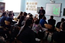 Учитель татарского языка и литературы Алмаз Газимзянович провел внеклассное мероприятие "Муса Джалиль - поэт герой!" посвященное жизни и творчеству татарского поэта Мусы Джалиля.