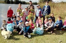 Учителя и учащиеся 2-5 классов очистили от мусора огромную территорию вдоль берега плотины и посадили саженцы.