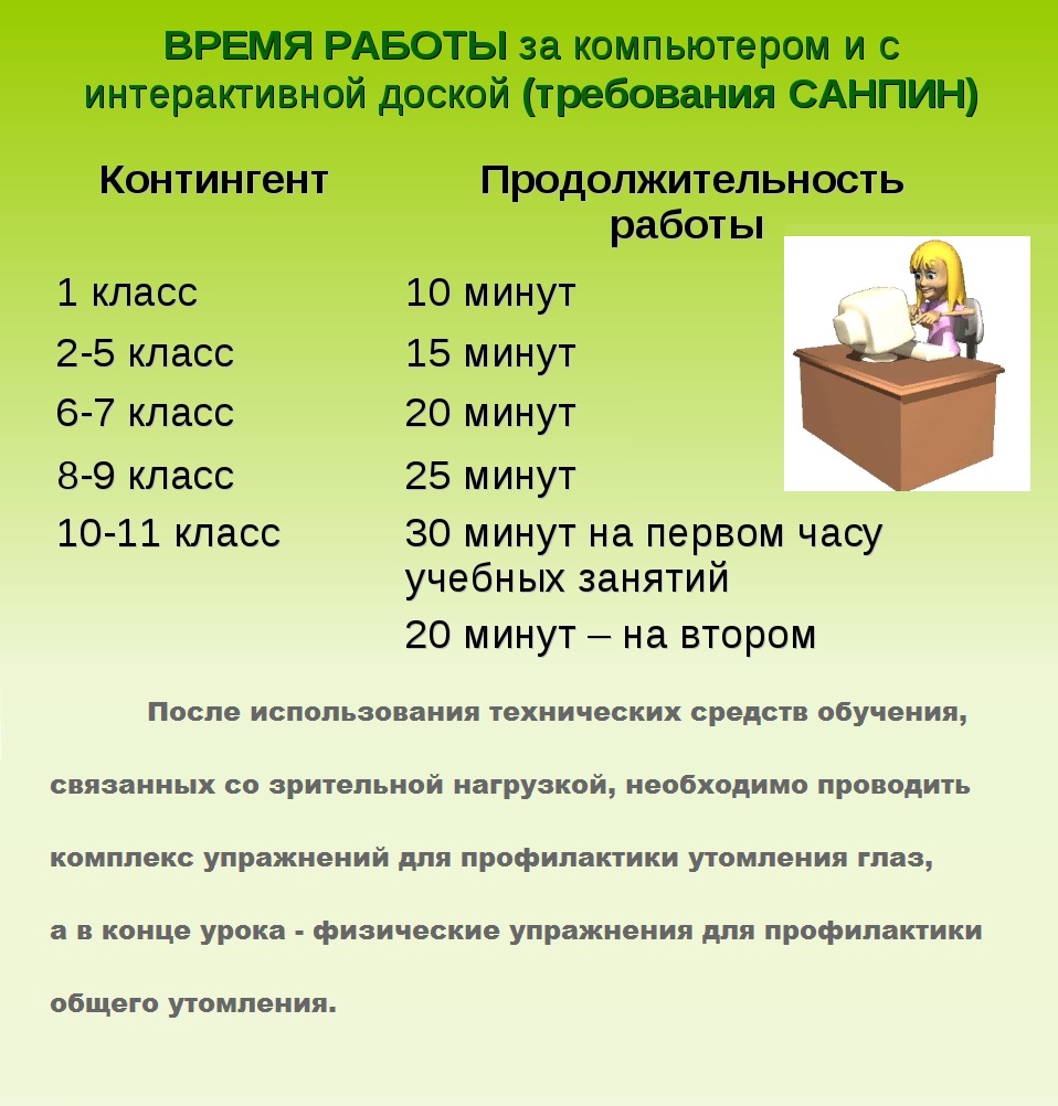НОРМЫ САНПИН РАБОТЫ ЗА КОМПЬЮТЕРОМ ПО ВОЗРАСТАМ