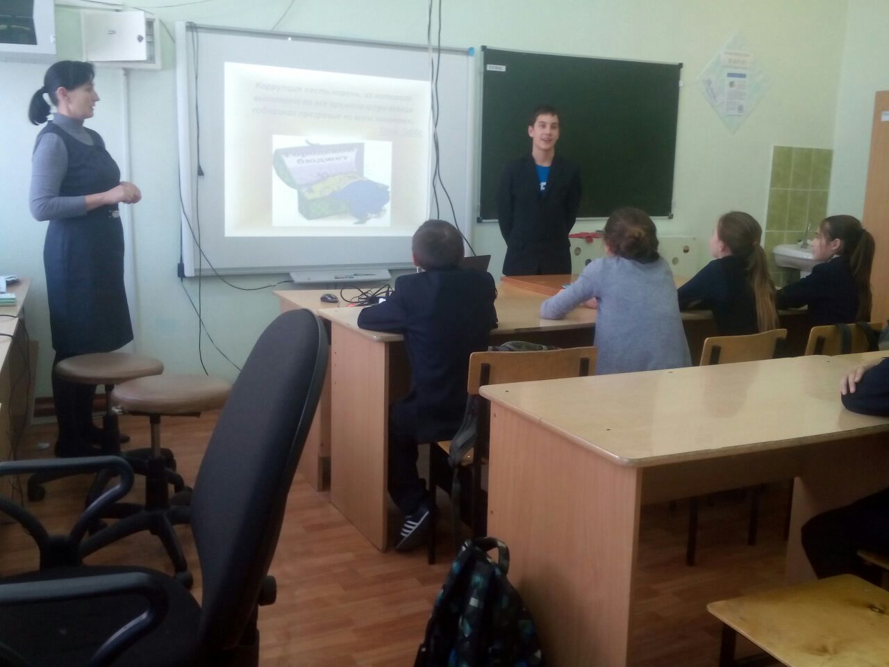 Опубликовано: 07.12.20176 и 7 декабря классные руководители провели открытые классные часы «Вместе – против коррупции!». На которых учителя постарались сформировать знания о причинах коррупции и основных направлениях борьбы с ней.