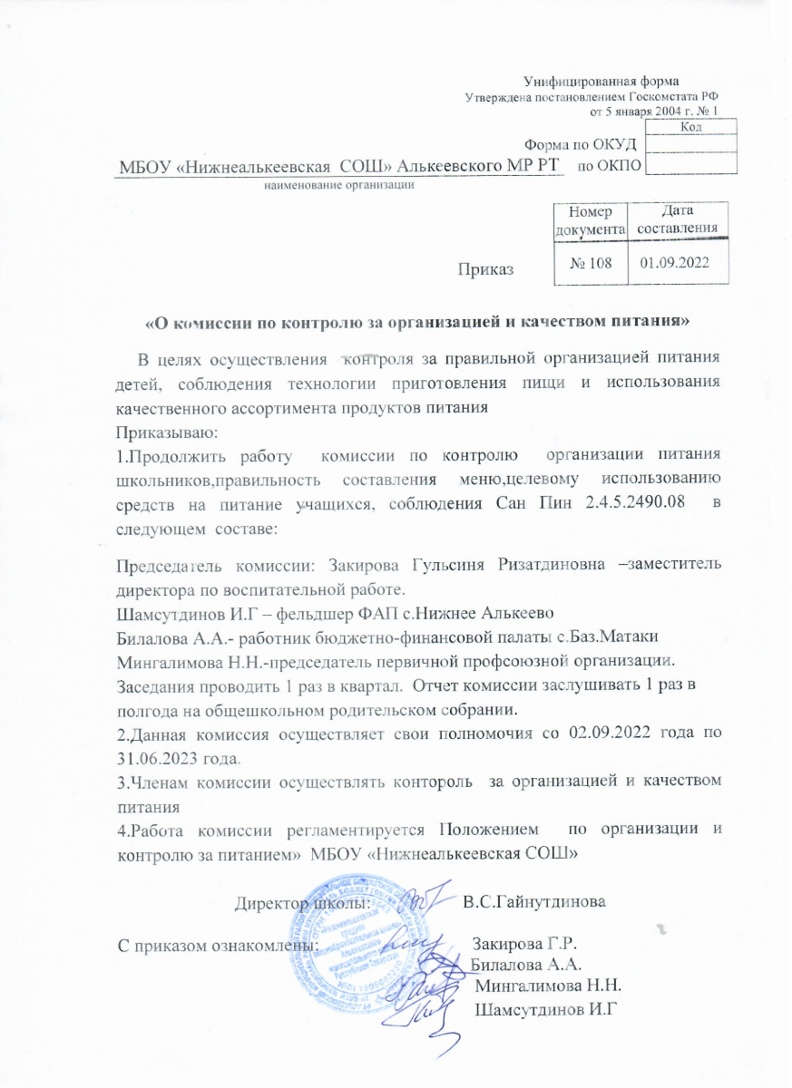 ПРИКАЗ О КОМИССИИ ПО ПИТАНИЮ