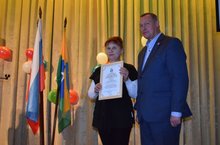 За развитие детского движения и личный вклад в деятельность детских общественных объединений на территории Алькеевского муниципального района ОДК Баканова Л.Г. была награждена грамотой главы района А.Ф. Никошина.