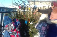 Новогодний дух витает в воздухе.Мы решили украсить Елочку-красавицу ,которая выросла у нас, цветными льдинкам :и красиво, и елку рубить не надо.Пусть себе растет и радует детей,родителей и проходящий народ!!!