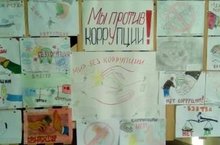 В фойе школы был оформлен стенд из рисунков. «Мы против коррупции!»