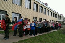 Сегодня состоялся торжественный митинг, посвященный 72-ой годовщине Победы в Великой Отечественнной войне. Торжественным маршем Бессмертного полка учащиеся прощли от школы до памятника Неизветному солдату, у корого с утра дежурил Почетный караул из учащихся 8-го класса. Тем замечательнее, что им сегодня были вручены футболки и береты юнармейцев. Но стоило лишь начаться линейке, как пошел дожьдь. Однако и Караул, и ведущие, а также зрители из числа односельчан никуда не расходились. Так и рождается мужество - из малого. Всех с Праздником Победы! Счастья, здоровья и мирного неба!