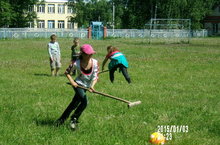 Сегодня в пришкольном лагере было организовано спотривное мероприятие под лозунгом "К защите Родины готов!", приуроченное ко Дню России 12 июня. Дети играли в хокей на траве, футбол иразличные другие занимательные игры.