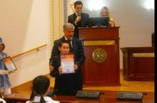 Вручение Благодарственного письма Республиканского фонда «Возрождение» директору школы Махмутову А.Ф. 18.01.2014