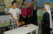 Башлангыч сыйныф укучылары бакча балаларына "Сертотмас үрдәк" һәм "Өч кыз" әкиятләрен сәхнәләштерделәр.