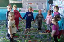 Куркынычсызлык атналыгында. Балаларга юлда йөрү кагыйдәләрен өйрәтү булды.