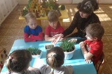 Дети в дошкольном возрасте очень любознательны. Особенно детям нравится наблюдать, как зарождается жизнь растений. Поэтому весной мы сажаем мини-огород на подоконнике. Дети принимают участие в посадке семян растений. Посадили помидоры, лук. Ребята с удовольствием выполняют эту работу. В процессе посадки семян, а также при появлении первых всходов, у детей закрепляются знания о том, какие условия необходимы для роста и развития растений.