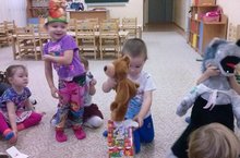 Дети второй младшей группы побывали в гостях у воспитанников подготовительной к школе группы.Познакомились уголком театрализованной деятельности, нарядились в героев сказок. А больше всего им понравились герои из сказки "Красная шапочка" 30.11.2016