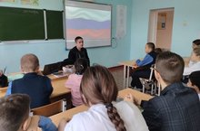 В МБОУ " Каргопольская ООШ" провели" Урок мужества" с участником СВО Галиуллиным Рамисом.