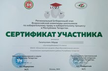 С 22 по 23 октября 2022 года в Казани состоялся региональный этап олимпиады школьников по избирательному праву и избирательному процессу в Республике Татарстан. Гизатуллин Айдар, ученик 11 класса Юхмачинской школы, под руководством своего учителя Москвиной Г.А. принял активное участие на олимпиаде и показал хорошие результаты