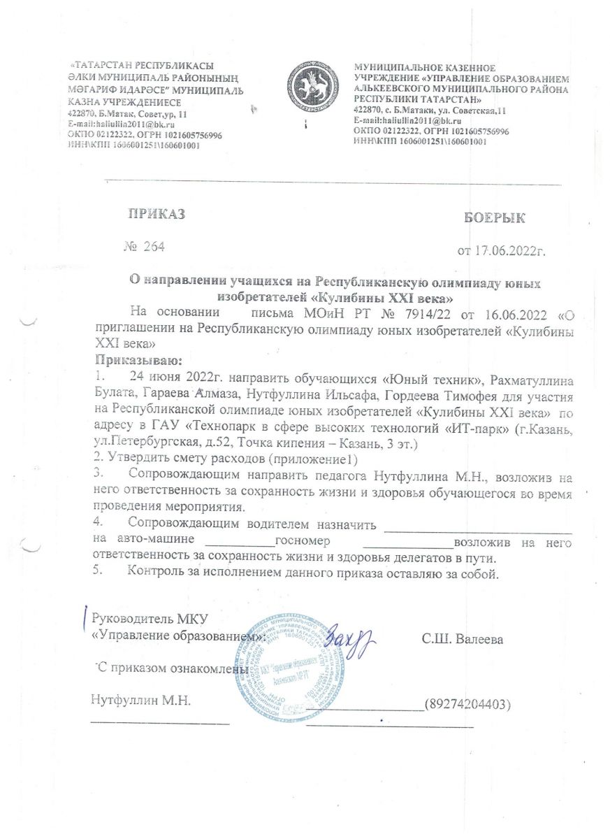 О направлении учащихся на Республиканскую олимпиаду юных изобретателей «Кулибины XXI века»
