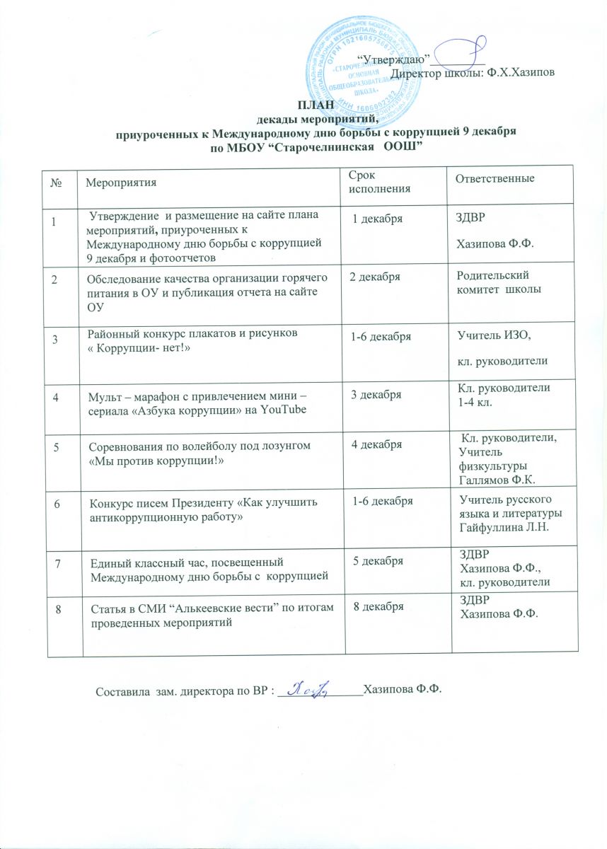 План декады мероприятий, приуроченных к Международному дню борьбы с коррупцией