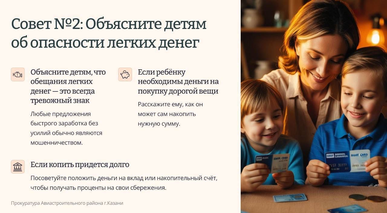 Совет2.Объясните детям об опасности легких денег