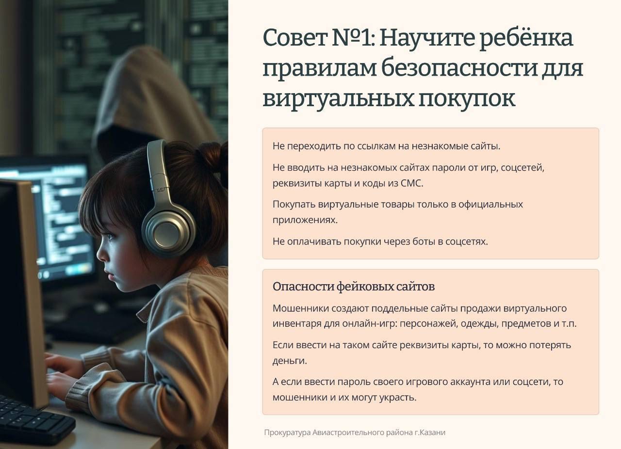 Совет1.Научите ребенка правилам безопасности для виртуальных покупок.