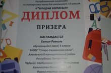 Безнең мәктәп укучылары математика, әйләнә-тирә, рус теле фәннәреннән оештырылган "Найди ошибку ", туган тел(татар теле) фәненнән "Татарча хатасыз" исеме астында үткәрелгән республика олимпиадаларында актив катнаштылар. 4 нче сыйныф укучысы Гатин Р. Р. әйләнә-тирә һәм туган тел(татар теле) фәннәреннән призер булды.